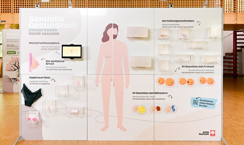 Die Ausstellung „Only Human — Leben. Lieben. Mensch sein.“ nimmt die Themen Frauen- und Männergesundheit, HIV und weitere sexuell übertragbare Krankheiten sowie Beziehungen und Geschlechterrollen in den Blick.