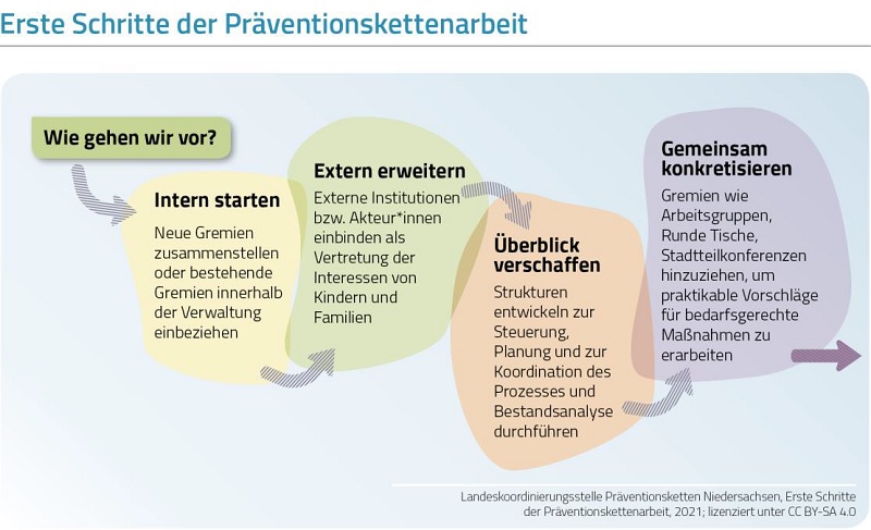 Nähere Informationen zu den Präventionsketten für ein Aufwachsen in Wohlergehen in Niedersachsens Städten & Landkreisen sowie viele Materialien sind auf der Seite www.praeventionsketten-nds.de zu finden und stehen zum Download bereit.